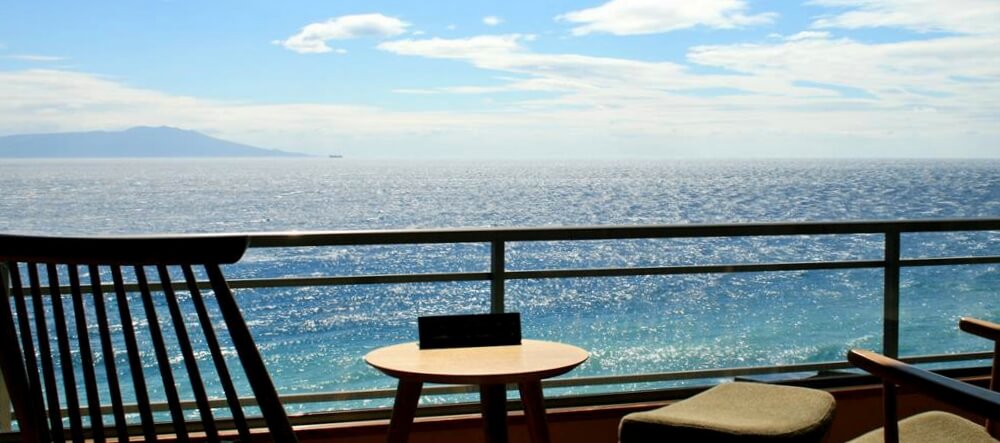 距離伊豆急行線「伊豆熱川站」僅7分鐘左右步行路程的「熱川館酒店 – 東伊豆」,前方即是熱川溫泉海灘,館方仍提供有預訂制的免費接載服務。該酒店引用自家源泉「八幡の湯」,有能夠聆聽海浪聲、視野超棒的絶景露天風呂、展望大浴場與私人湯屋。客房配備的全部都是帶海景的奢華空間,有整片面朝大海的落地窗,就算在室內也可輕易享受充足陽光和海景,舖有榻榻米,夾以日式和現代相融的設計風格。另外推薦房客提前預約「房內用餐服務」,提供個人服務員,可在房內欣賞美麗夜海景,順便品嚐多道美味日式料理及新鮮海鮮,很值得體驗的晚餐服務!