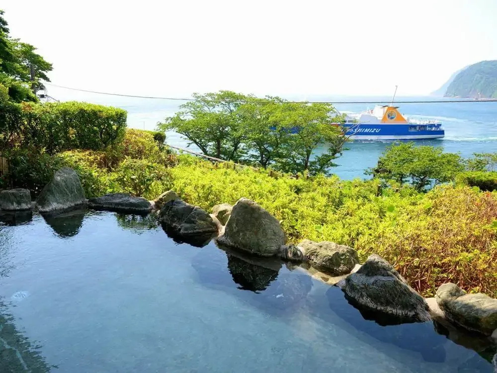 如果你是非常嚮往在日式旅館的無邊際溫泉浴場中享受風和海洋洗禮、同時享受泡湯樂趣的朋友,那麼毗鄰伊豆高原和稻取溫泉的「伊豆稲取温泉濱之湯旅館」,有機會你一定要來住上一晚!在旅館頂樓設置了能在清晨欣賞地平線升起的朝陽,與一望無際的大海與伊豆七島的16個浴池,令人震撼的270度大海全景,彷若伊豆大島就在眼前!濱之湯所有客房皆為海景優雅日式套房,窗外即是唯一的湛藍天空與海洋,大多數房型備有客廳、兩間洗手間、窗邊寬廊,而帶露天溫泉的海景套房,則是引進絹絲泡泡浴的露天浴池。