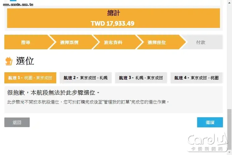 8.無論你的票價是否有包含選位,或是你想要花錢選位,都必須訂完票後才能選擇!