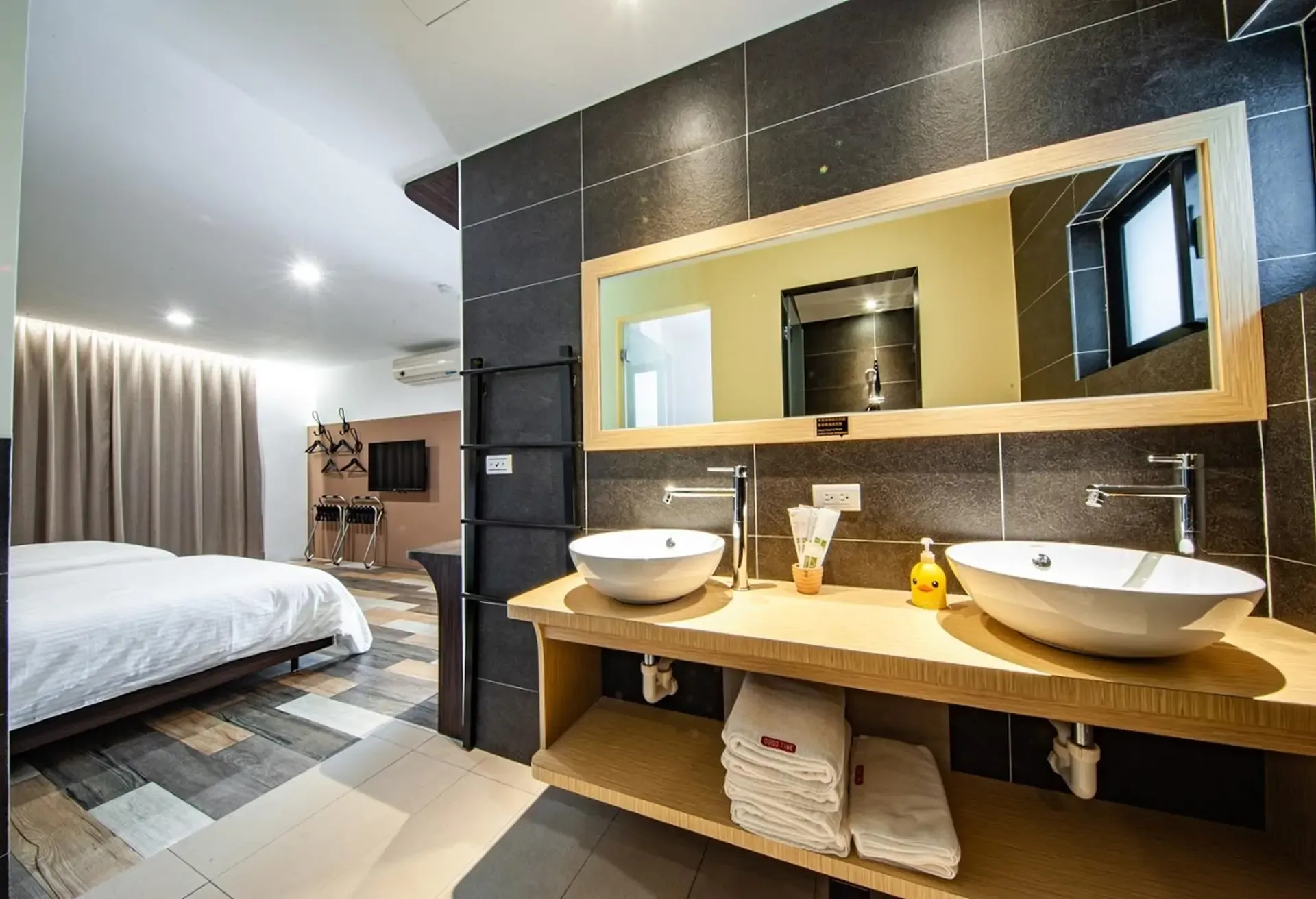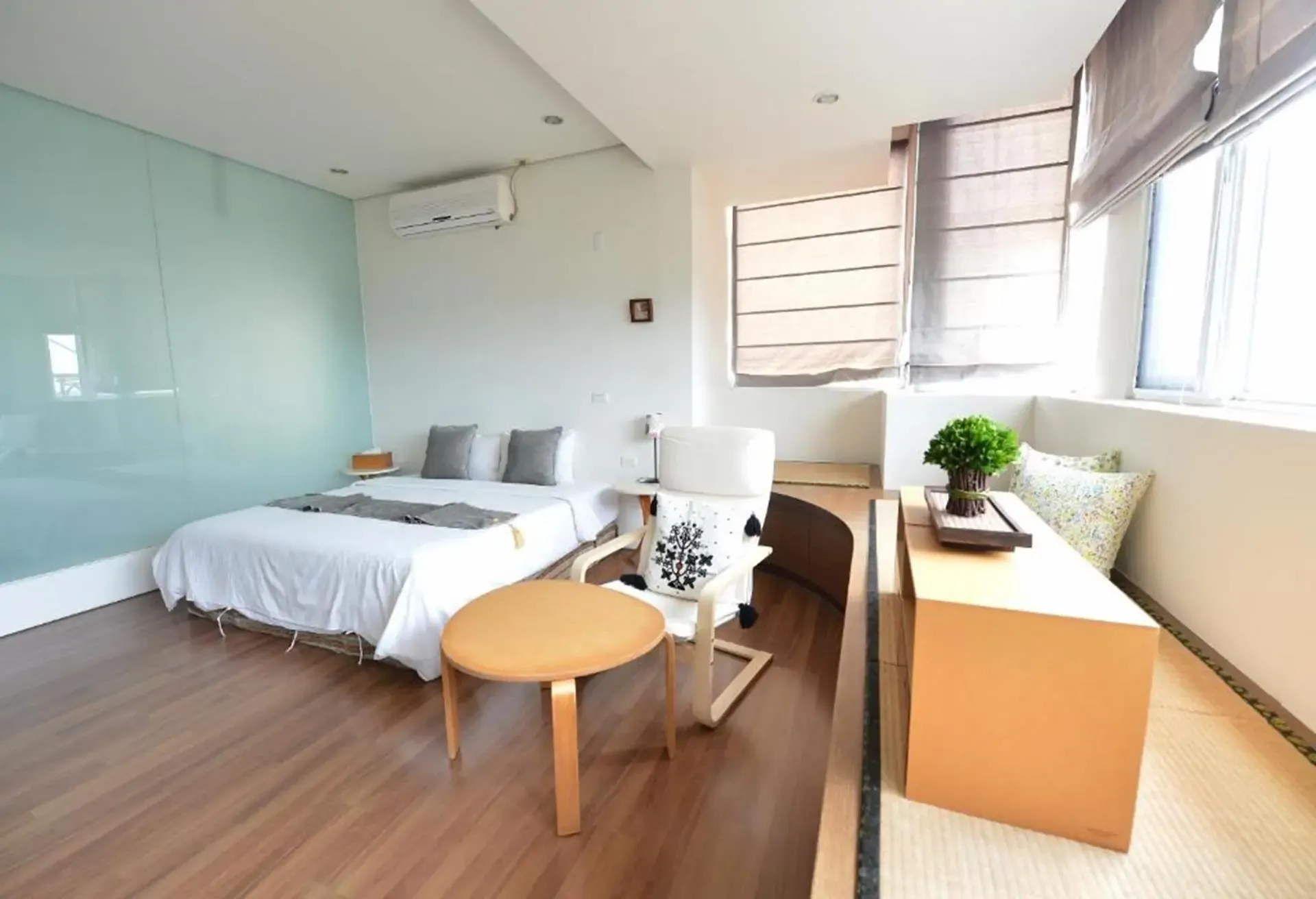 - 房間寬敞,有設計感,且備有超大景觀陽台,陽台還放置躺椅提供房客休息。