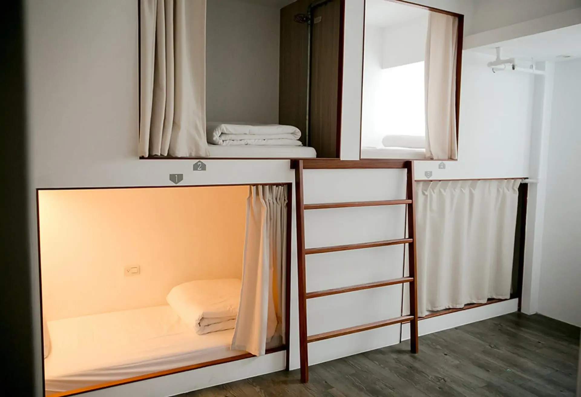 【房種類別】雙人床雅房、混合雙人膠囊房、混合單人膠囊房、女生雙人膠囊房、女生單人膠囊房等。